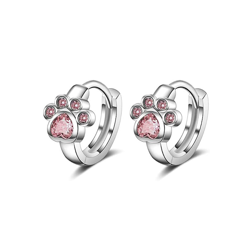 Aretes rosa con huella de gato
