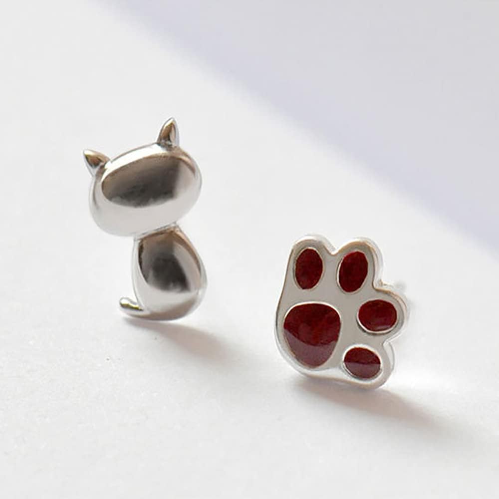 Excelente Diseño de Gato: El diseño simple y elegante hace que sea fácil de combinar con la ropa, y el material es suave en la piel, es resistente, no deformable y no se desvanece. Un lado tiene una huella de patita y el otro lado son aretes asimétricos. ¡Con un lustre constante, sin duda duplicará tu encanto!