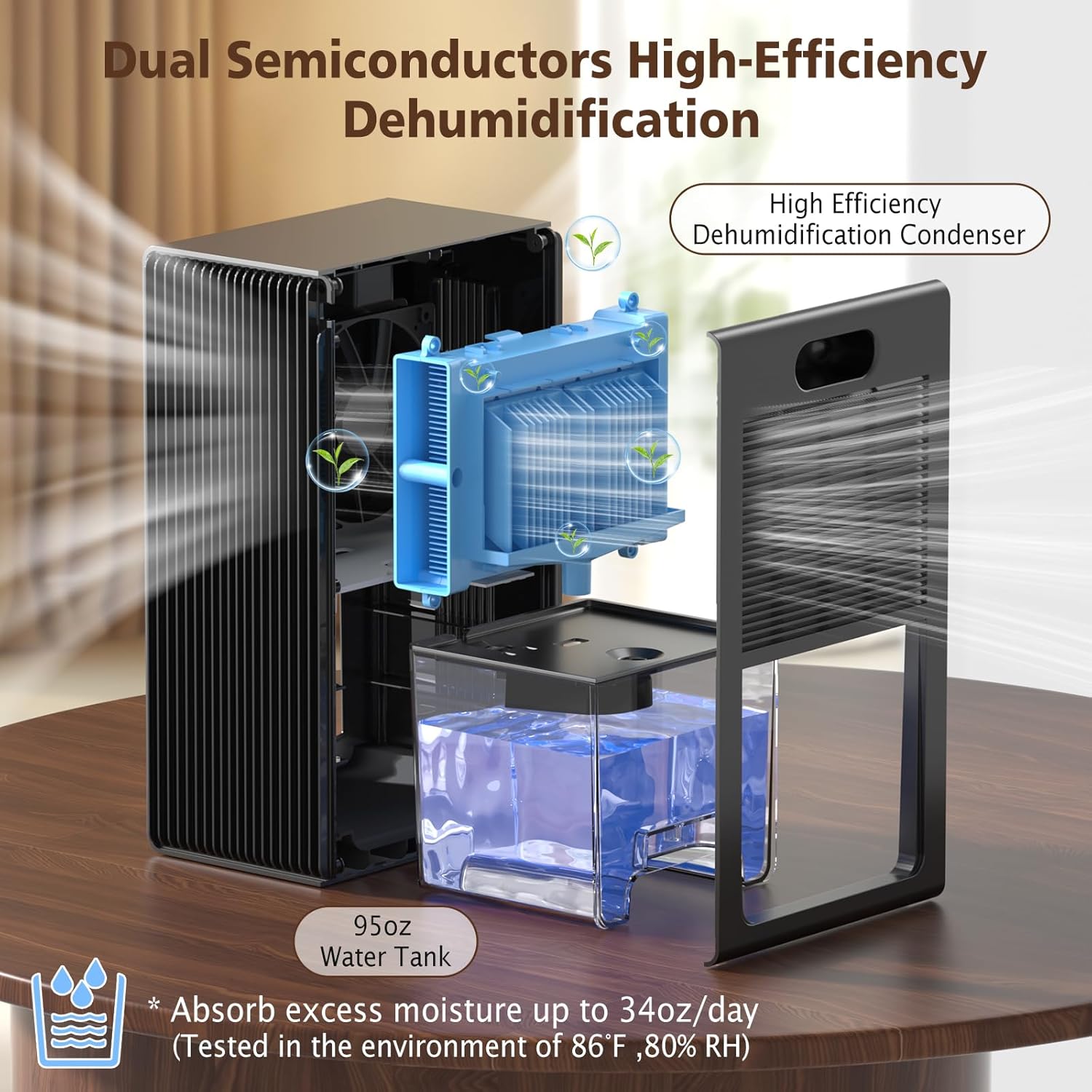Elimina eficazmente el exceso de humedad del aire gracias a su tecnología de condensación por semiconductores.