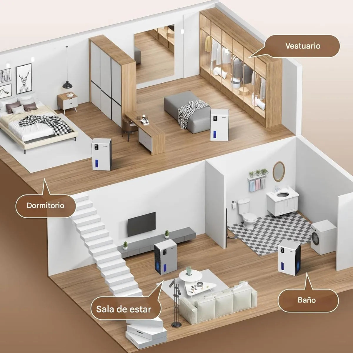 Mantén tus espacios secos y saludables con el deshumidificador NineSky CT2, ideal para ambientes de hasta 92 m² (1000 ft²). Diseñado para baños, dormitorios, sótanos y otros espacios del hogar, ofrece una combinación de eficiencia, seguridad y diseño moderno.
