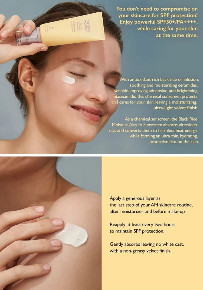 Haruharu wonder Black Rice Moisture Airyfit Sunscreen 50ml – Protector Solar FPS 50+ PA++++ con Arroz Negro